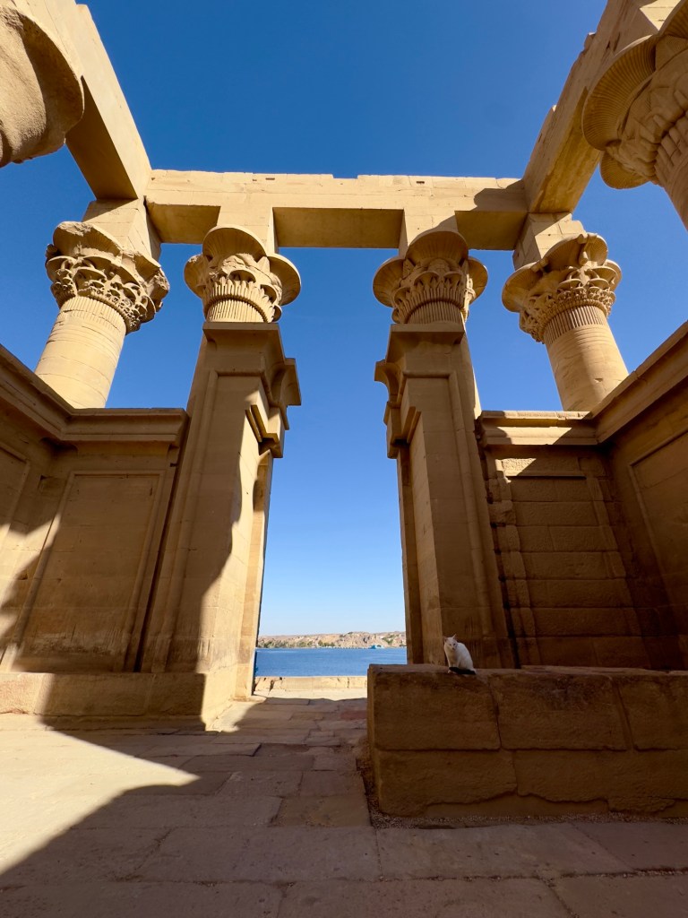 Philae isn’t just about the temple—it has other impressive structures scattered across the complex, like the Mammisi (Birth House) and Trajan’s Kiosk, also known as “Pharaoh’s Bed.” This picturesque Roman-era pavilion is perfect for dramatic Nile-side photoshoots. And let’s not forget about the actual stars of the visit, guardians of the temple, the ‘pièce de résistance’ – the cats.