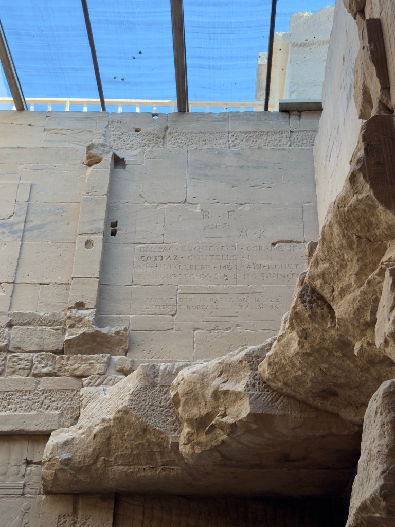 Beyond mythology, Philae has its fair share of “historical graffiti.” Napoleon’s scholars, who documented (ahem, looted) Egypt, left their mark here, as did early Christians, who repurposed the temple and etched crosses into its walls. You’ll also notice a lot of scratched-out faces—ancient gods defaced in the name of religious transformation. History is nothing if not ironic.