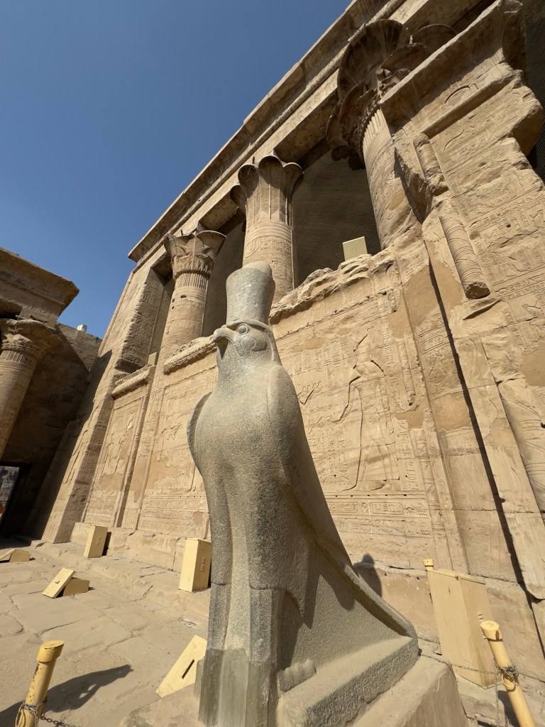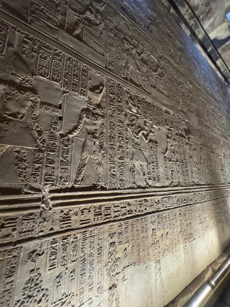 Edfu exudes a sense of power and triumph, quite different from the healing calm of Kom Ombo. The contrast feels fitting, as the temple was built on the legendary site of Horus’s victory over his rival Seth. With its sheer scale and mythological symbolism, Edfu leaves a lasting impression, on top of the sheer size of the structures, it’s hard not be in awe just standing there.