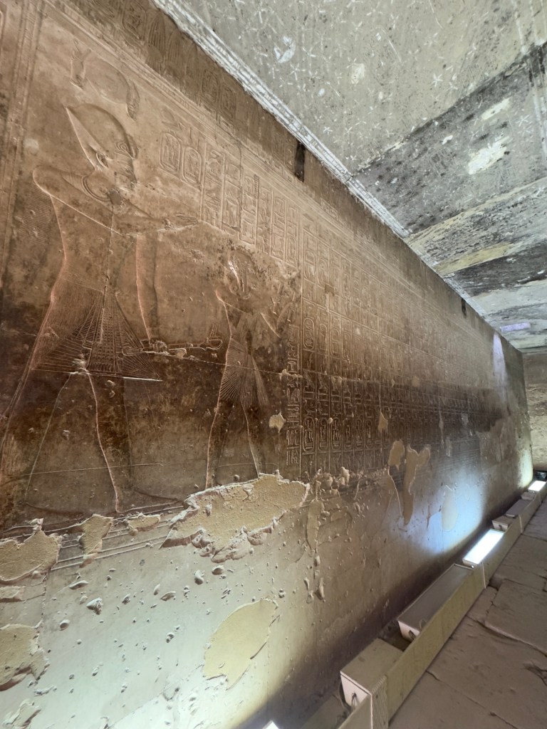 Carved in two horizontal rows, it starts with Narmer and ends with Ramesses I. Seti and Ramesses are shown offering to their predecessors. It’s a rare native chronology — most others come from Greek historians like Manetho.