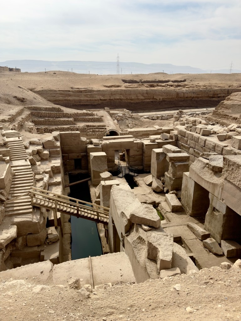 Abydos was also believed to be Osiris’ mythic burial site, making it incredibly sacred. Behind the temple lies the Osireion, a symbolic tomb to Osiris with massive granite blocks and a central island-like sarcophagus chamber.