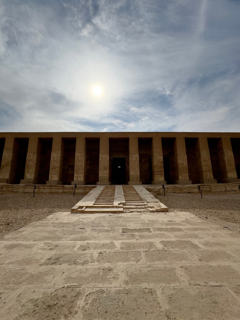 As always, nothing is without symbolism. The rising staircase represents the sun’s ascent and rebirth; the descending staircase symbolizes its descent into the underworld. Echoes of Nut’s myth — swallowing and birthing the sun — mirror this duality. East vs. West. Life vs. death. Earth vs. sky. Oxygen vs. my diminishing leg strength.
