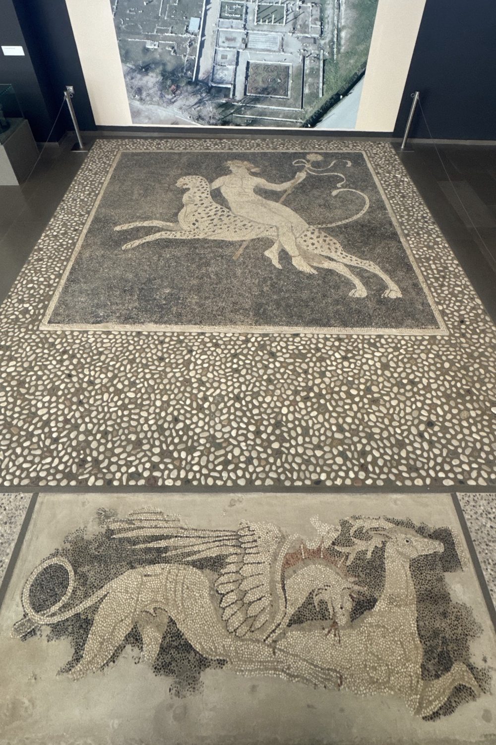 No visit is complete without the Archaeological Museum of Pella, just next door. The modern building houses an impressive collection of artifacts, many unearthed from the site itself. The first thing you encounter is the massive 8-meter-long mosaic of “The Abduction of Helen.” It’s joined by other masterpieces like “The Stag Hunt,” “Dionysus on a Panther,” and “The Lion Hunt,” thought by some to depict Alexander himself. The museum also showcases reliefs, altars, pottery, glassware, sculptures, busts, cursed inscribed tablets, and coins, offering a vivid picture of life in ancient Pella.