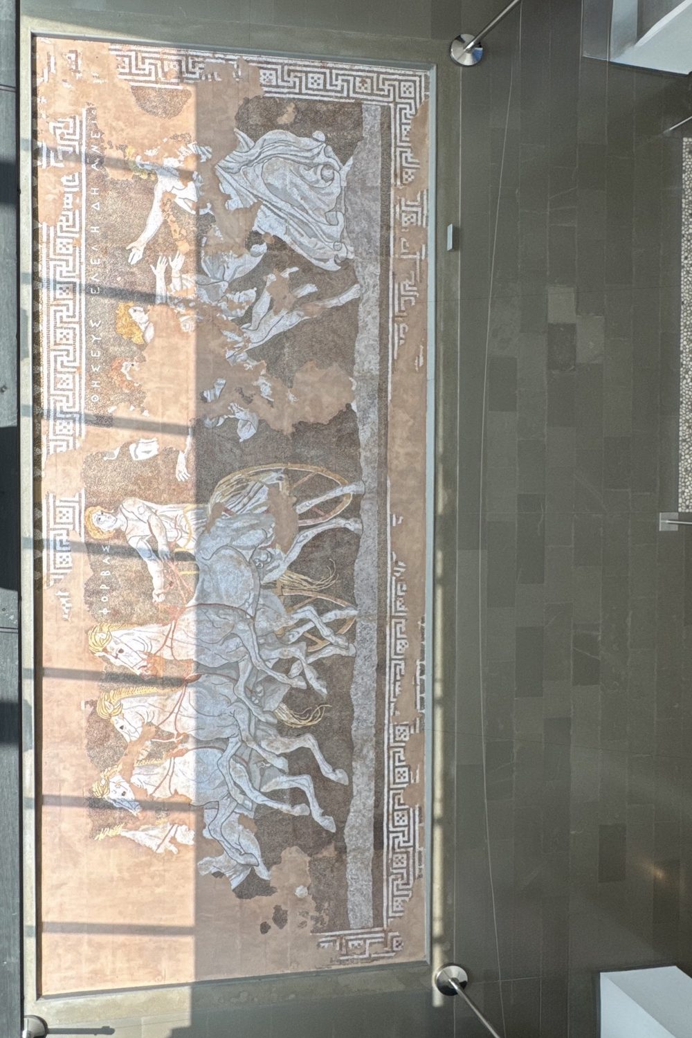 Then it was on to the Royal Tombs, one of the most extraordinary archaeological discoveries in Greece. Tomb II, believed to belong to Philip II, contains treasures beyond imagination: a marble sarcophagus, a golden larnax with the Vergina Sun emblem, a gold oak-leaf crown, weapons, and ceremonial armor. The tomb is exceptionally preserved, with vibrant frescoes still intact.