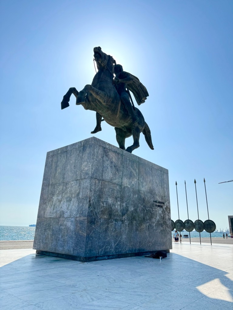 Thankfully, the city itself has plenty of open-air monuments that don’t come with closing hours. Just a few minutes’ walk from the museum stands the massive statue of Alexander the Great on his legendary warhorse, Bucephalus. He gazes eastward, toward the lands he conquered, with a frieze of the Battle of Gaugamela at his side. Set right by the sea, it’s also a stellar spot to catch the sunset.