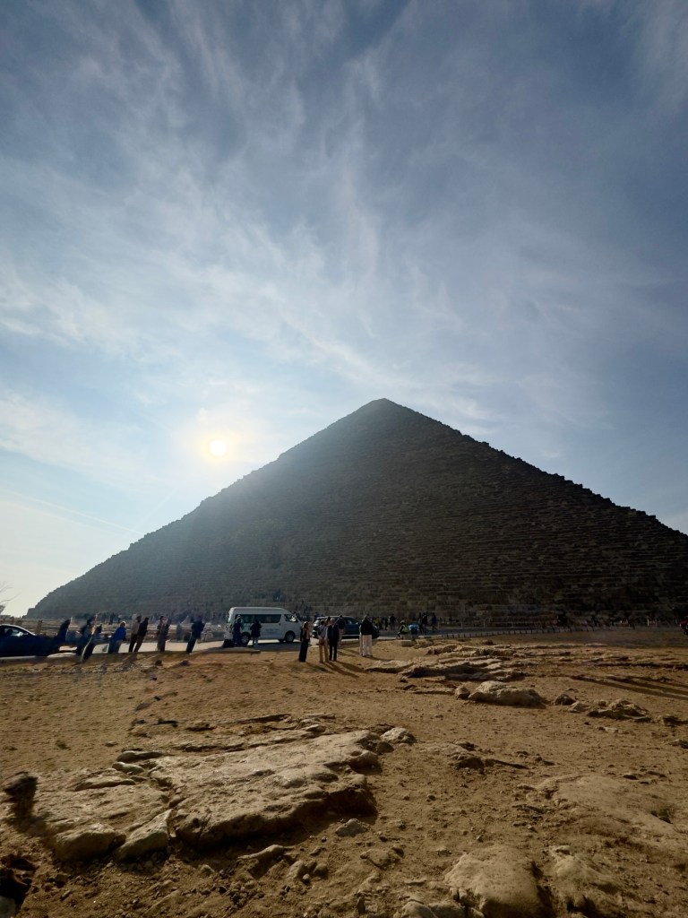 We started early with the obvious: the Pyramids of Giza. Because you kind of have to. It’s like going to Paris and skipping the Eiffel Tower — except imagine if the Eiffel Tower was 4,500 years old, hand-carved from megalithic stones, and allegedly aligned with the stars by people who didn’t even have wheels or drones.