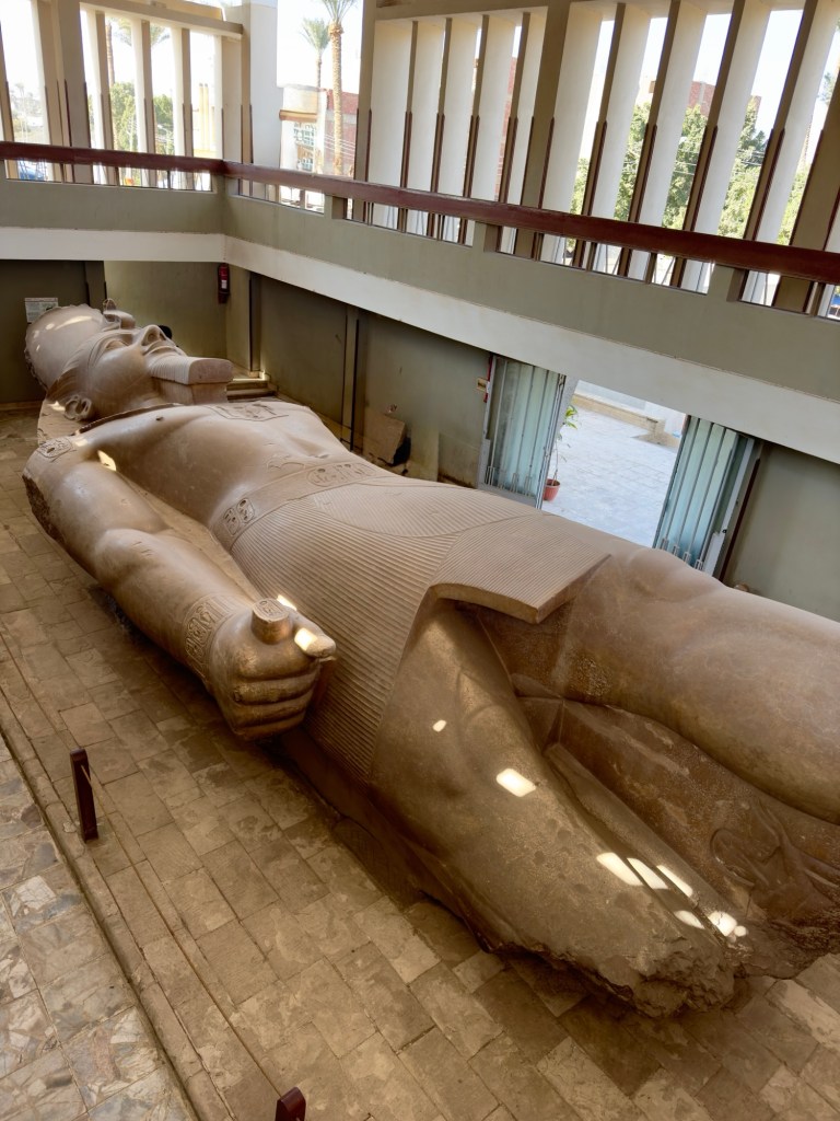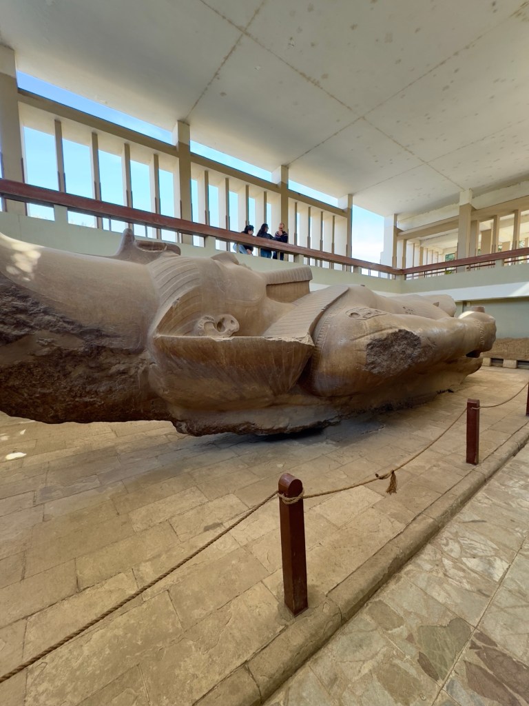 He’s lying down because, frankly, no one wants to risk trying to stand him up again. The 83-ton statue is too heavy, too old, and too precious. Even the British and French looked at it and said, “Nah, too expensive,” and so the Egyptians built the museum around it instead.