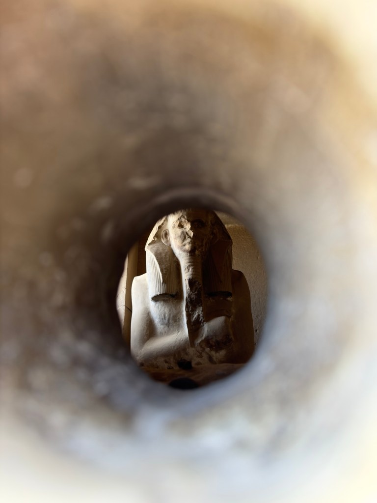Even horizontal, he’s massive. You view him from a balcony above — the only way to take him all in. The level of detail carved into that limestone is insane. His nose alone is the size of a toddler. And perfectly symmetrical. It’s both eerie and majestic.